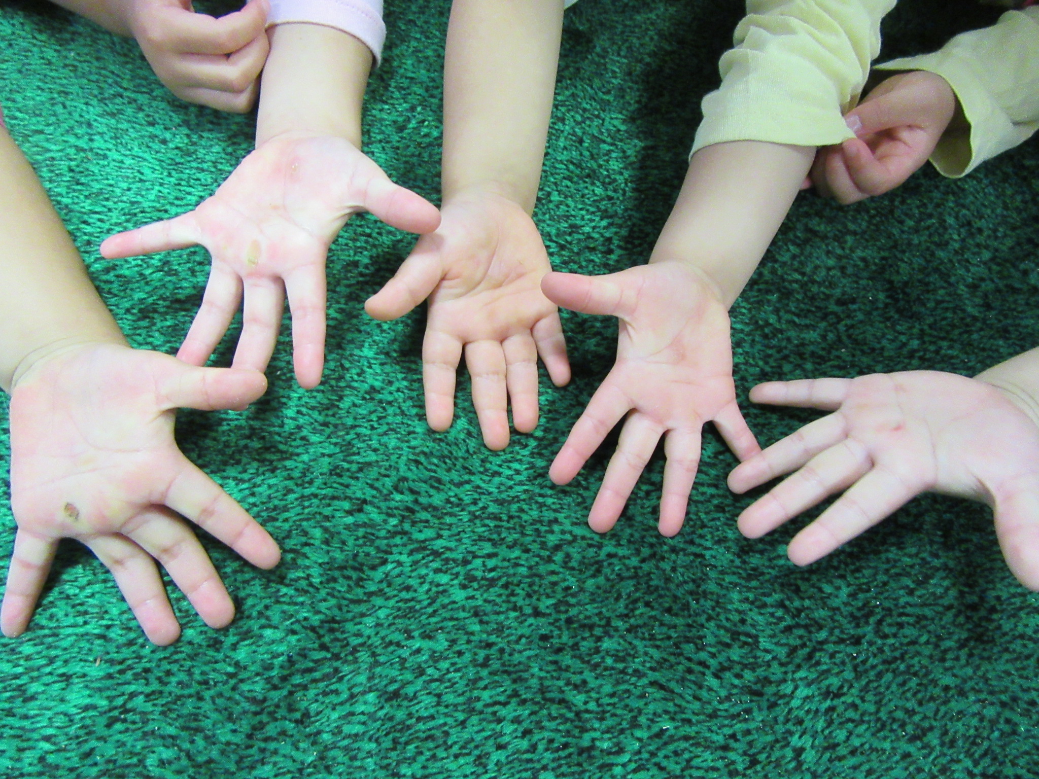 3歳児の手にも“がんばりまめ”ができました!