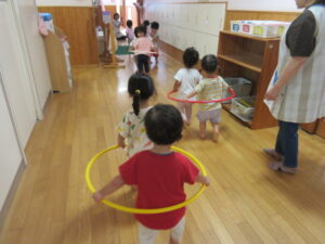 雨の日の乳児クラスの子ども達