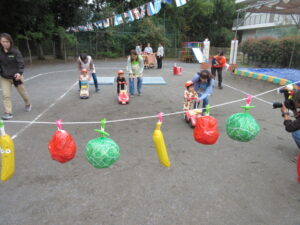ひよこ、こりす組のかけっこと親子競技