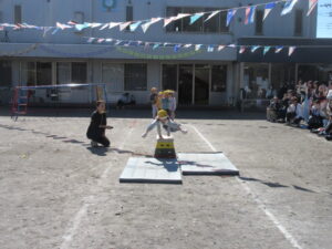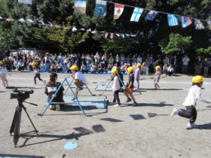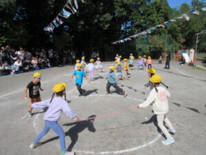 保育園生活最後の運動会。彩り豊かな20人の心が一つにまとまった縄跳びの演技でした。雲梯、鉄棒、跳び箱など運動遊びの演技も一人一人が立派にやり遂げました。
