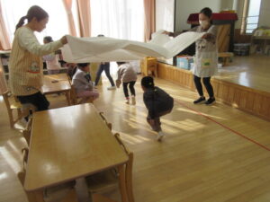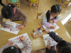 きりん組で、防火教室を行いました。火の用心のクイズをしたり、塗り絵、煙体験をしたり・・・最後に火の用心のはっぴをきて、掛け声をかけながら近所を歩きました。