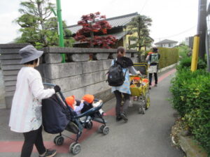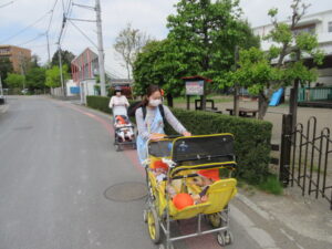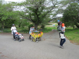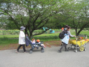 きりん組の子ども達が入間川沿いの小道を通ってお散歩に行ってきました。若葉がとってもきれいで、川を渡ってくるそよ風がとっても気持ちがよかったです。