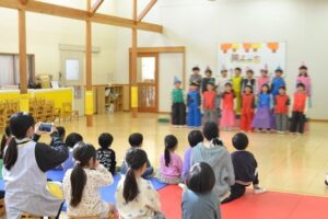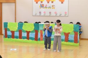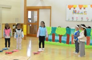 保育園では予行練習の日はお客さん役のお友だちを誘って観客に慣れる経験もしています。