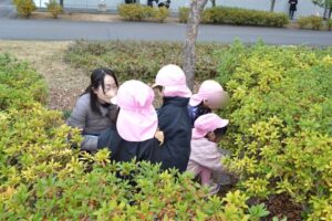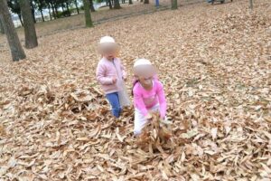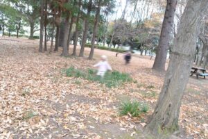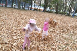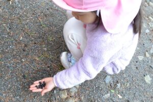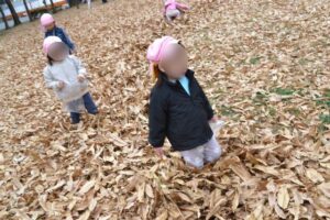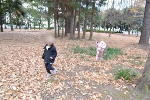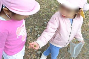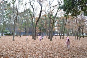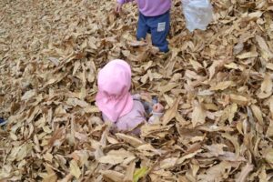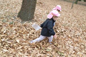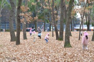 そして、お気に入りスポットの雑木林へ到着すると、早速どんぐりなどの木の実探しが始まりました!