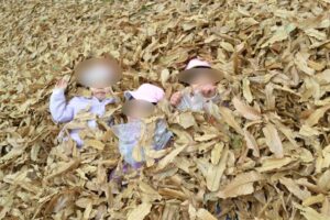 大きな木々の下にはクヌギのまんまるどんぐりも落ちていて、そちらも一生懸命拾っていました😊