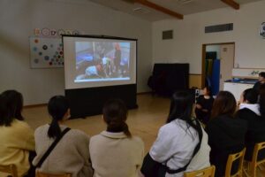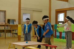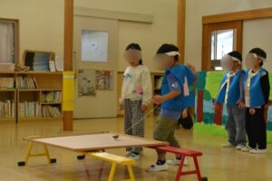 今までに先生たちが撮りためた遊び博士たちの楽しい遊びをお家の方に見てもらいました。