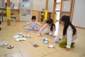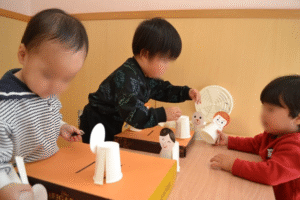 3歳未満児は2グループに分かれて、ちゅーりっぷの部屋で交代で色々な遊びを楽しみました。