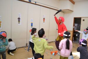 集会には鬼のお面を身につけて参加していた子どもたち。