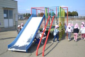 大きいクラスは園庭で大型遊具の遊び方を教えてもらいました。