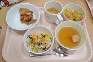 今日の献立はちらしずしに花麩のすまし汁🌸
