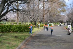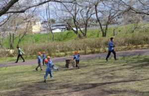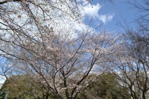 公園には桜が咲いていてたくさんのお客さんが来ていました。