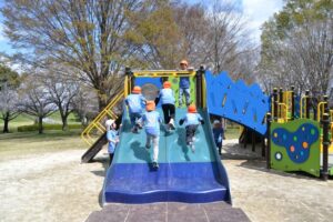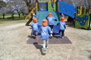 遊具で遊んだり、園長先生と鬼ごっこしたり…。