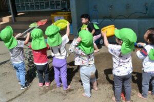 最初はお水を溜めるのが面白かった子どもたちでしたが、もちろんこれだけではすみません😀😎
