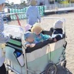 2歳児すみれ組さんは毎朝先生がテラスの前にテントを立ててくれます。