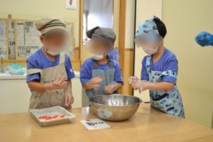 初めは恐る恐る慎重な二人でしたが、慣れてくると職人さんのように素早く切っていました!