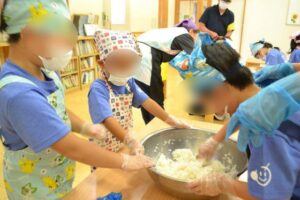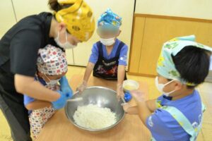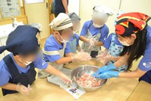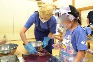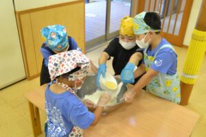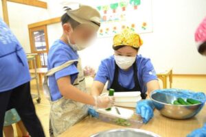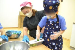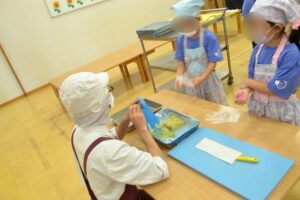 栄養士さんに切り方を教えてもらってレッツチャレンジ!!