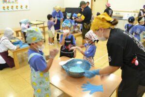 調理さんが盛り付けている間、エプロンシアターを見ながら待ちました😊