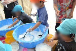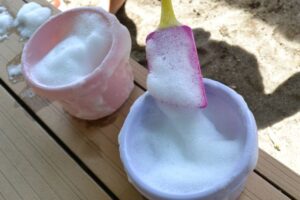 容器に入れてごはんやかき氷、飲み物などに見立ててお料理ごっこが盛り上がりました!
