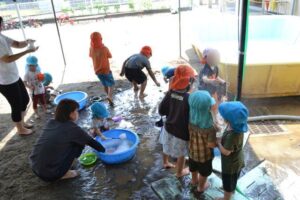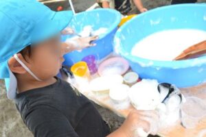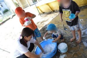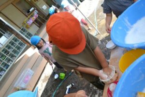 夏の間、『一緒に遊ぶ?』とよく小さいクラスを誘ってくれた5歳児さくら組さん。