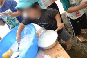 そして、泡だて器やお玉を使ってよーくかき混ぜます!!