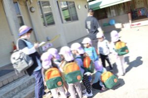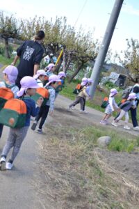事務所やテラスから園長先生、看護師さん、他のクラスのお友だちなどからエールをもらって出かけていきました。
