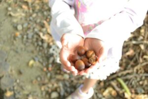 『こっちに行くとどんぐりがあるよー!でも、蜂もいるから静かにね!』