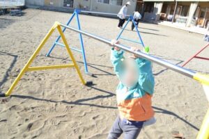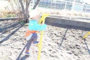 鉄棒にぶら下がってみたりと楽しいことをいっぱい見つけてごきげんです💛