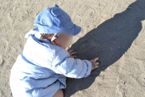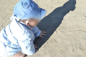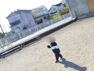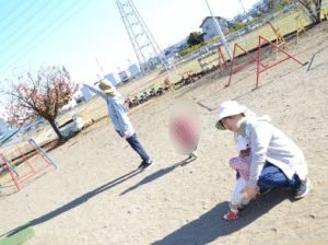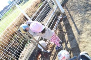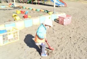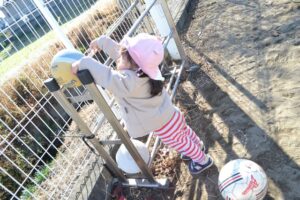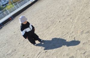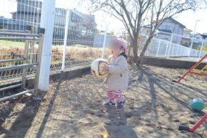 みんなはお散歩に出かけてしまったようで、今日は0歳児のつくし組さんが園庭を独占!!