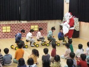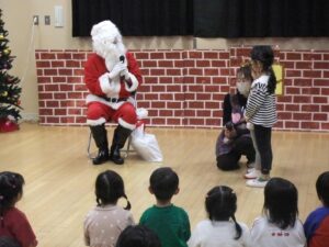 年末恒例のクリスマス会には今年もサンタクロースが来てくれました。今年のサンタはちょっと背が高いみたい。